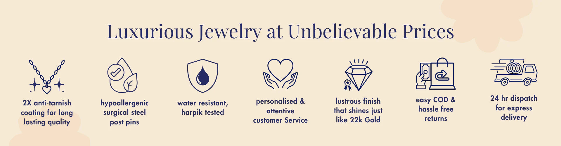 1. Gentle Cleaning: Even though our jewelry isn't as delicate, it still requires proper cleaning. Clean the pieces using a soft cotton cloth if needed. Do not be harsh with the same.
