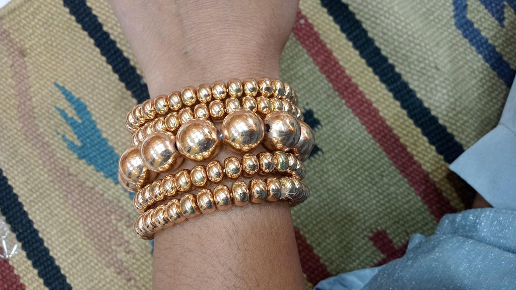Discover the essence of luck and luxury with our TFC Rings of Gold with Lucky Balls Gold Plated Stacked Bracelet Set. This stunning collection features five intricately designed bracelets adorned with rings of gold and lucky balls, plated to perfection. Stack them together for a statement look that exudes elegance and charm, or wear them individually for a touch of sophistication. Versatile and stylish, these bracelets are the perfect addition to any jewelry collection, elevating your ensemble with timeless beauty and fortune-inspired flair.