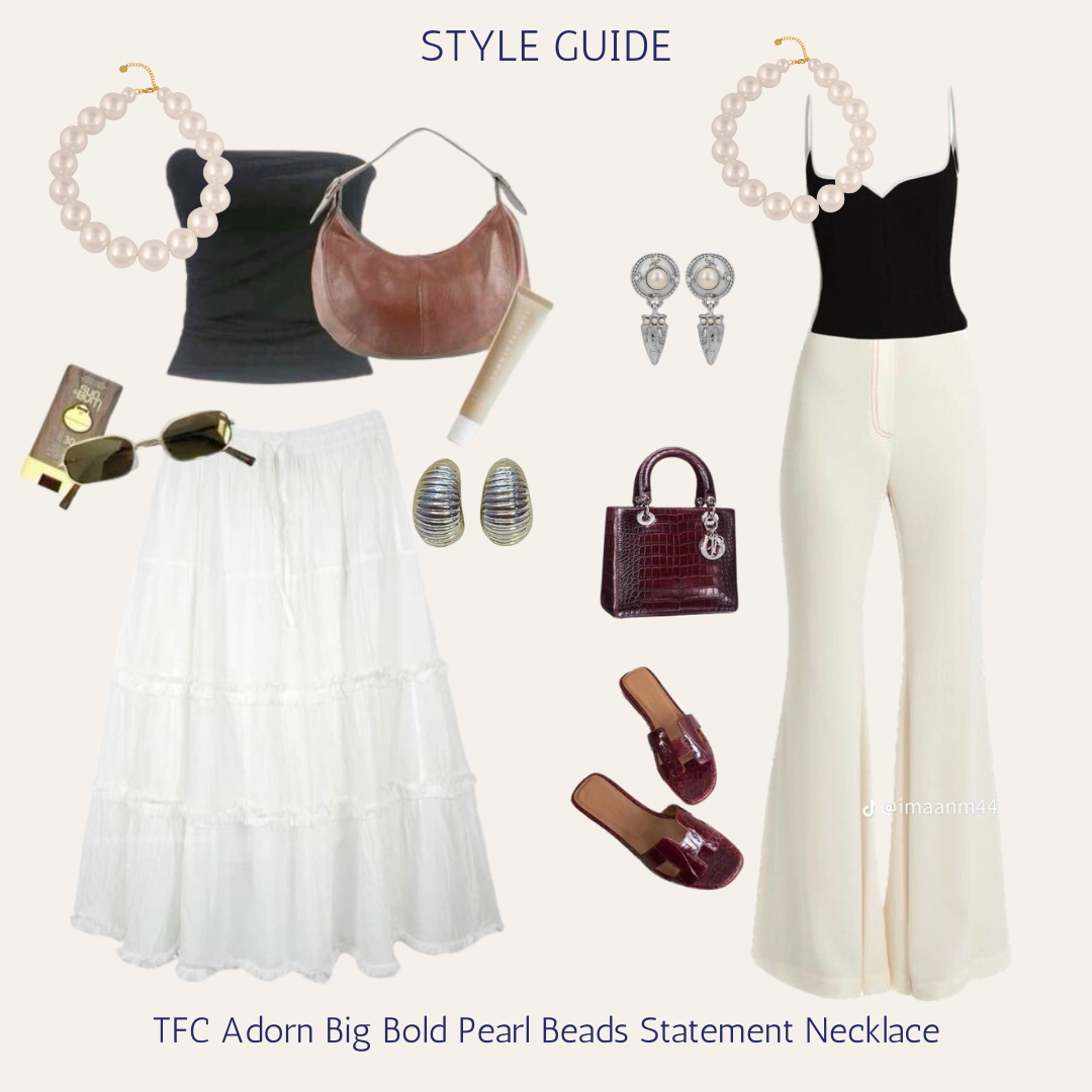 Introducing TFC's bold big pearls range - the epitome of elegance and opulence in the world of fashion accessories. This exquisite pearl statement necklace is a true marvel of design and craftsmanship, destined to become the crowning jewel of your jewelry collection. Each lustrous pearl, meticulously handpicked for its radiance and perfection, is expertly strung together to create a mesmerizing cascade of luminous spheres. The sheer abundance of pearls in this necklace evokes an aura of grandeur and regal sophistication.