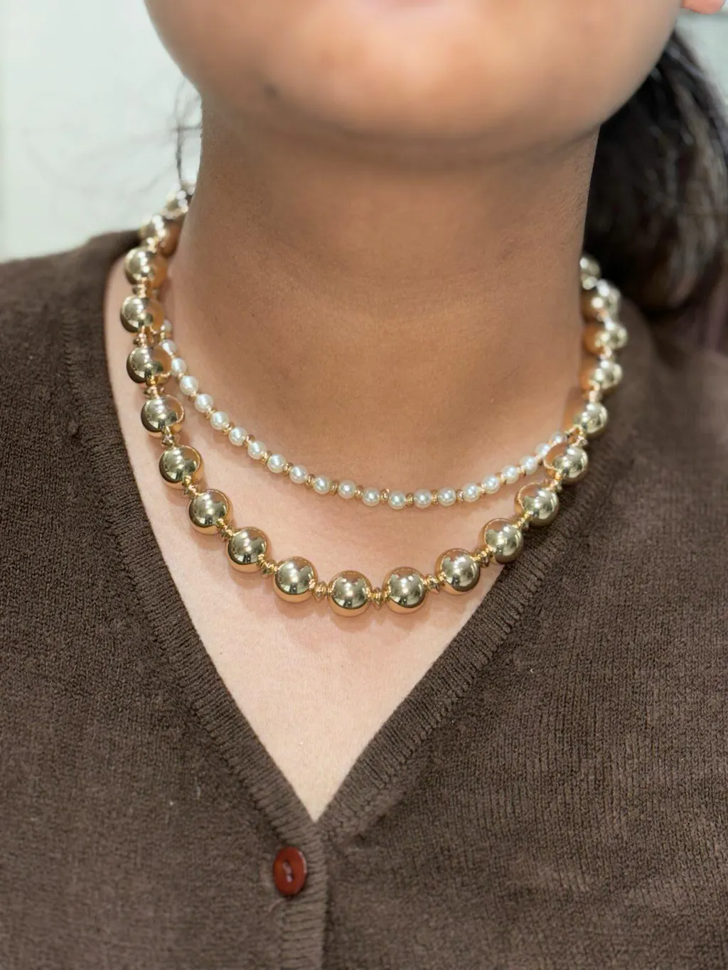 TFC Bold and Gold Beads and Pearl Layered Necklace